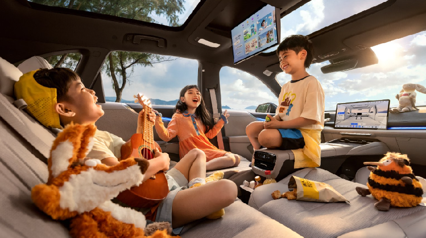 五恒健康座舱(恒温、恒湿、恒氧、恒洁、恒静)同样拉满,新车空气质量优于国标10倍以上,获中汽中心“零甲醛”汽车认证。内饰材质选用OEKO-TEX母婴级健康认证材质,婴幼儿零距离接触或啃咬也安然无忧。再加上同级唯一的南德TÜV护眼智慧顶灯和全车三屏莱茵TÜV低蓝光认证,有娃家庭直接拿捏。
