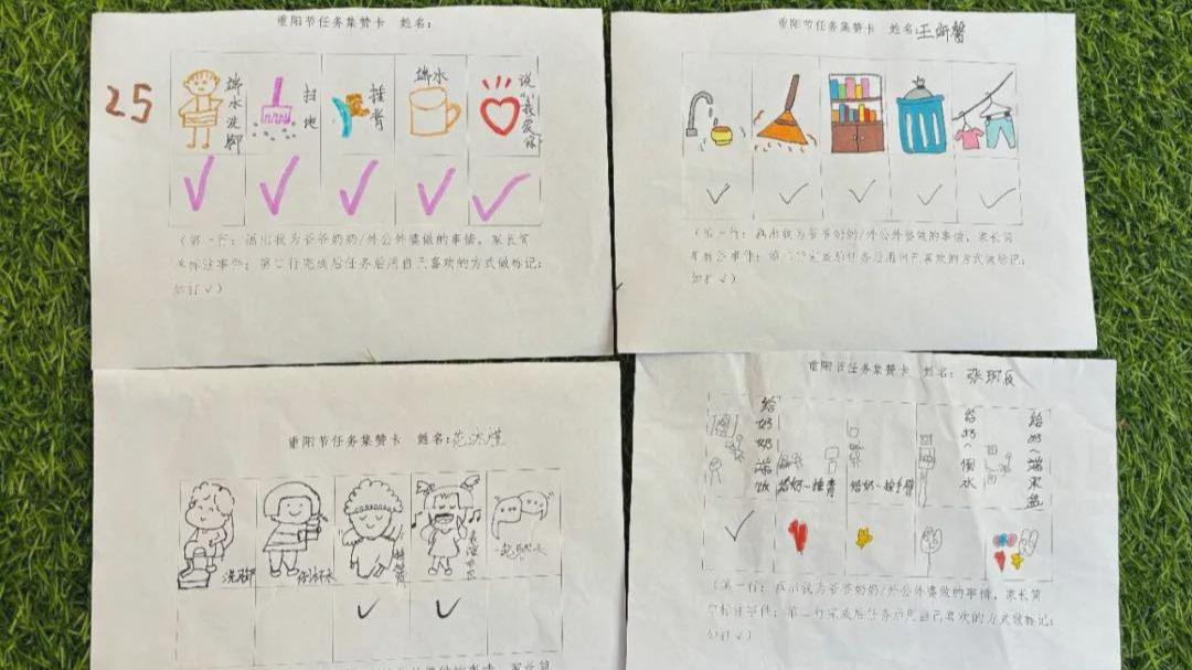 谁说“爱”只能靠说?我们的小朋友用“集赞卡”给出了答案!为了让孩子们在实践中学会敬老爱老,“爱在重阳集赞卡” 活动热闹开启。信阳市浉河区幼儿园孩子们积极帮长辈做事、送上祝福,认真打卡集赞;每张卡片上的点点滴滴,都是他们对长辈的心意,凑成了重阳里最动人的小美好。
