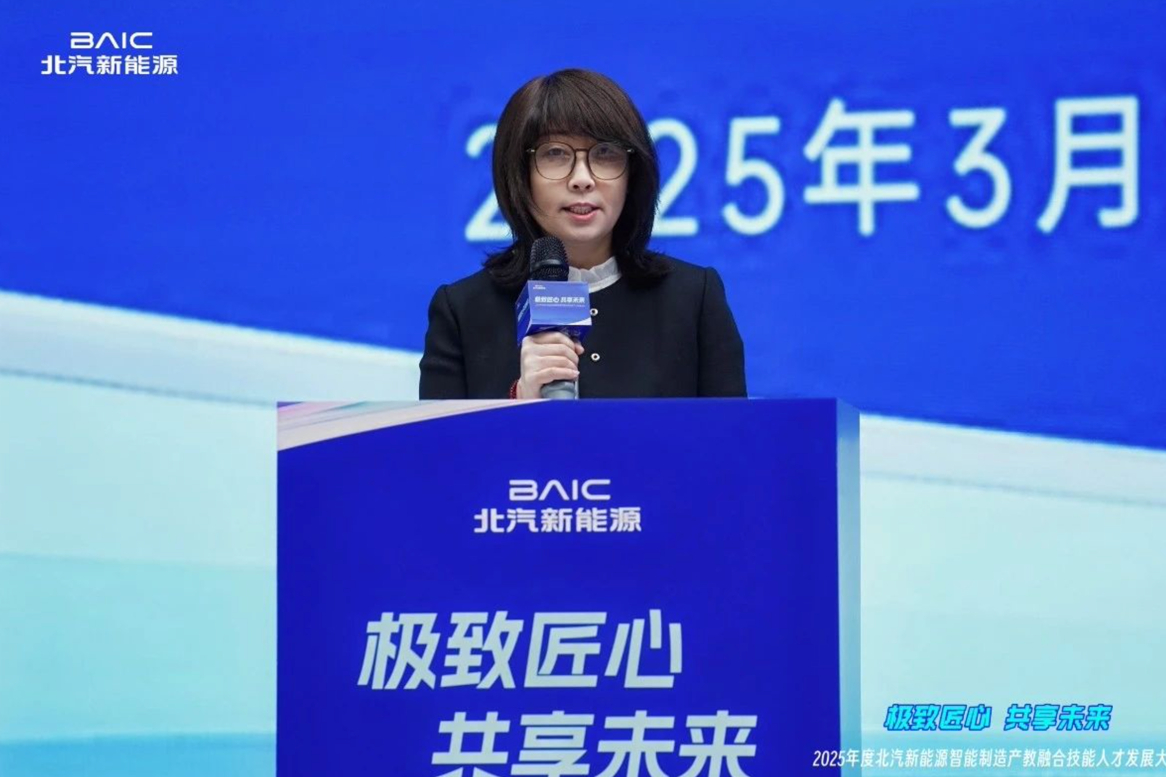 3月14日,2025年度北汽新能源智能制造产教融合技能人才发展大会在北京经开区北汽蓝谷隆重召开。北京经开区人力资源与社会保障服务中心领导、全国33所院校的80名代表齐聚一堂,与北汽新能源党委副书记陈青波共同探讨新能源汽车产业技能人才培养的新路径。这场大会不仅是政校企三方协同的深度对话,更标志着北汽新能源在智能制造与职业教育融合领域迈出了关键一步——以政策为引领、以实践为根基,为行业培育新时代的“大国工匠”。