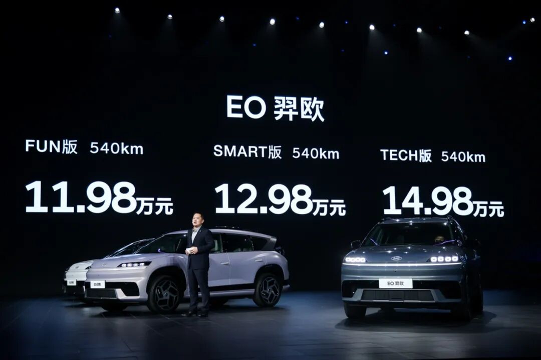 13款新能源产品将分为三个阶段推进,第一阶段首先覆盖EV市场,作为首款纯电平台SUV EO 羿欧,7年磨一剑,经过120万公里严苛测试后才正式上市,并用11.98万的起价带来了30万的价值;第二阶段将加速跨越式前进,明后两年,5款中型轿车和SUV产品将聚焦中型新能源,除了EV纯电之外,混动、增程等不同的新能源驱动形式都将推出市场,并且混动的纯电续航里程将达到600公里以上,而增程的纯电里程将超过250公里。在智能化方面,明年起北京现代量产车型将全部搭载L2+级智能辅助驾驶;进入2028年-2030年的第三阶段,计划发布中大型轿车、SUV 和 MPV 等7款新能源产品,新能源产品线全面覆盖,将实现L3智驾与全栈软件定义汽车,以及下一代智能座舱信息的娱乐系统,向高端市场发起冲击。