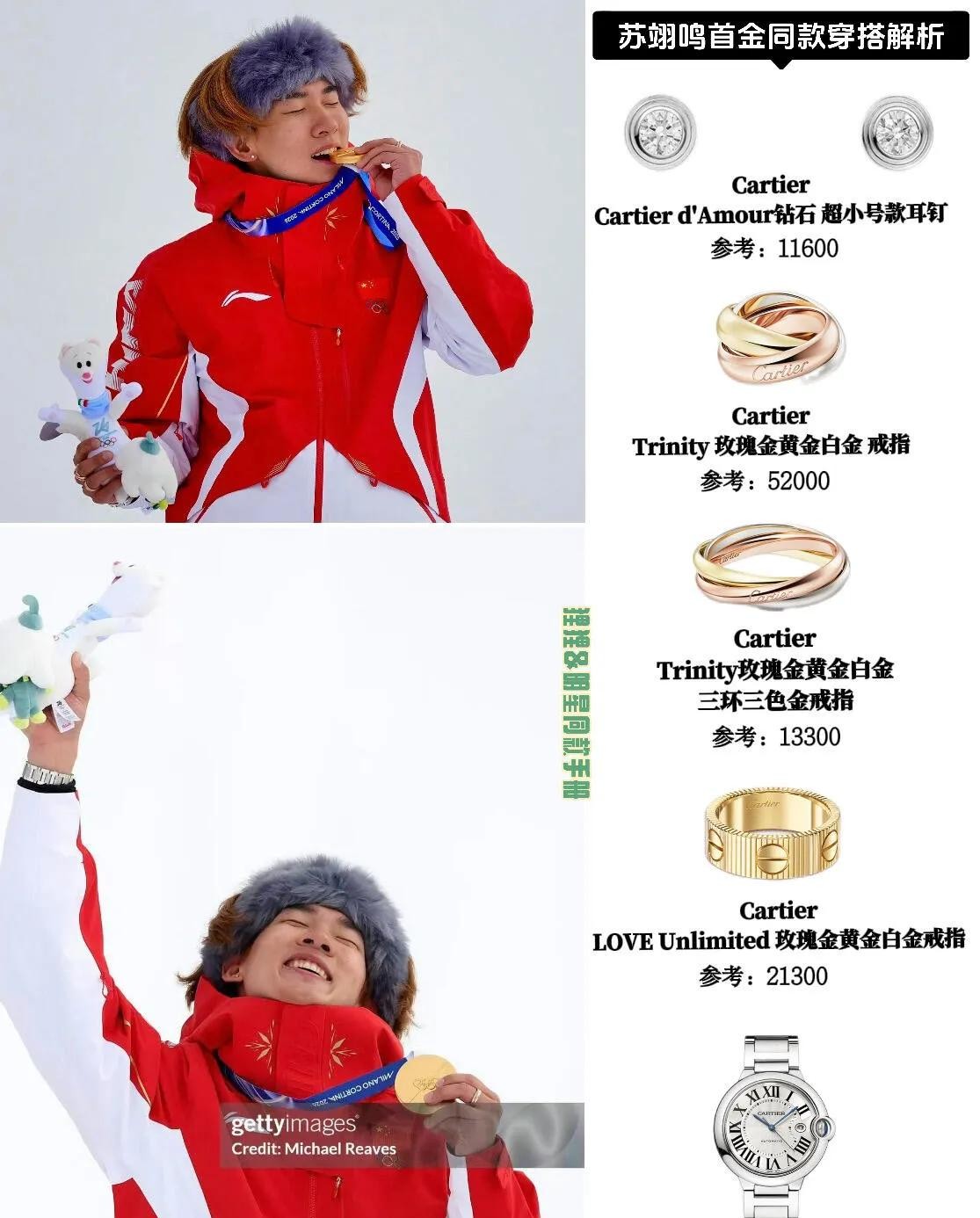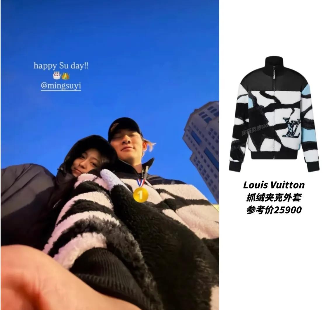 LV那件抓绒外套挺显眼,深灰底子,袖口缀着暗金Logo,吊牌价确实标着19800。不过懂行的粉丝翻了他训练日程表才咂摸过来:这衣服是赛前三天才收到的赞助样衣,连吊牌都没拆,直接套上拍官宣照。他手腕上那块卡地亚Ballon Bleu,表带磨得有点发亮,表盘背面刻着一行小字:“To Yimeng, 2021.12.18”——是他第一次带她回家见父母的日子。