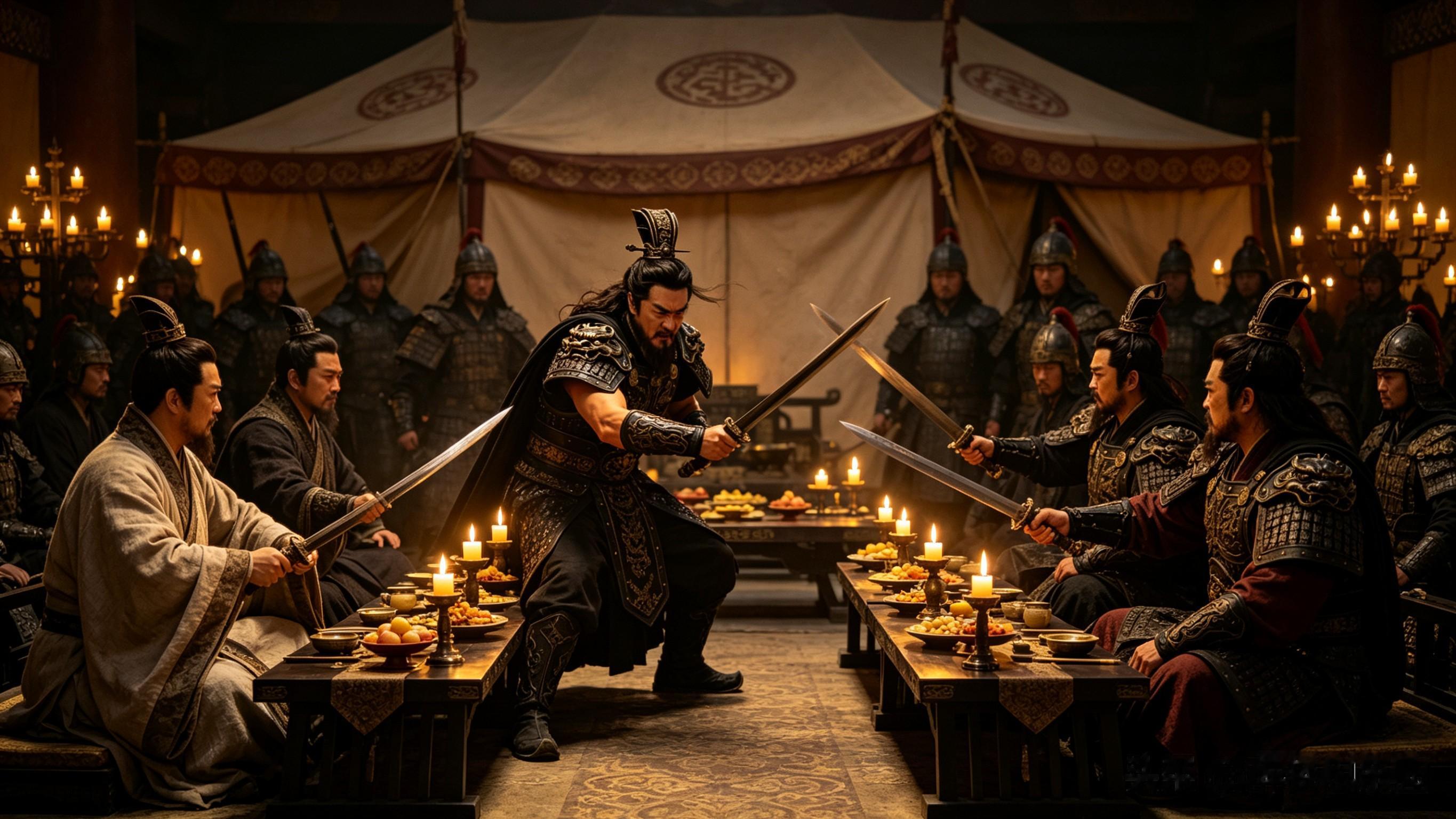范增一看,坏了,项羽被刘邦这老小子忽悠了。赶紧让项庄舞剑,伺机刺杀刘邦。项伯一看不对劲,自己的未来亲家要被项庄这小子搞死,于是也开始拿剑和项庄对舞,才勉强保住刘邦的小命。刘邦一看这个氛围越来越不对劲,赶紧找个借口离开,丢下车马,从小路一口气跑回来了。