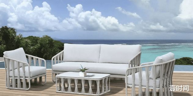户外沙发组合(三人沙发+ 2单人椅+茶几):模块化设计可灵活调整布局,高密度防水海绵坐垫坐感柔软,亲肤面料快速风干;配套绳编茶几边缘圆润安全,适配海景露台、花园聊天区等场景,为休闲放松提供轻奢空间。(vx:zjh243415517)