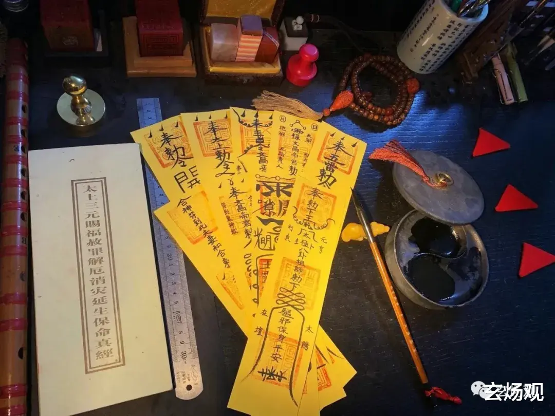 (灵符由道长高功手绘,为信众依科演教祈礼制持)