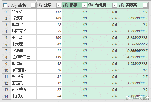 案例:给下图 1 的数据表同时添加三列,分别是“指标”、“最低完成率”和“实际完成率”。