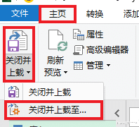 6. 选择任务栏的“主页”-->“关闭并上载”-->“关闭并上载至”