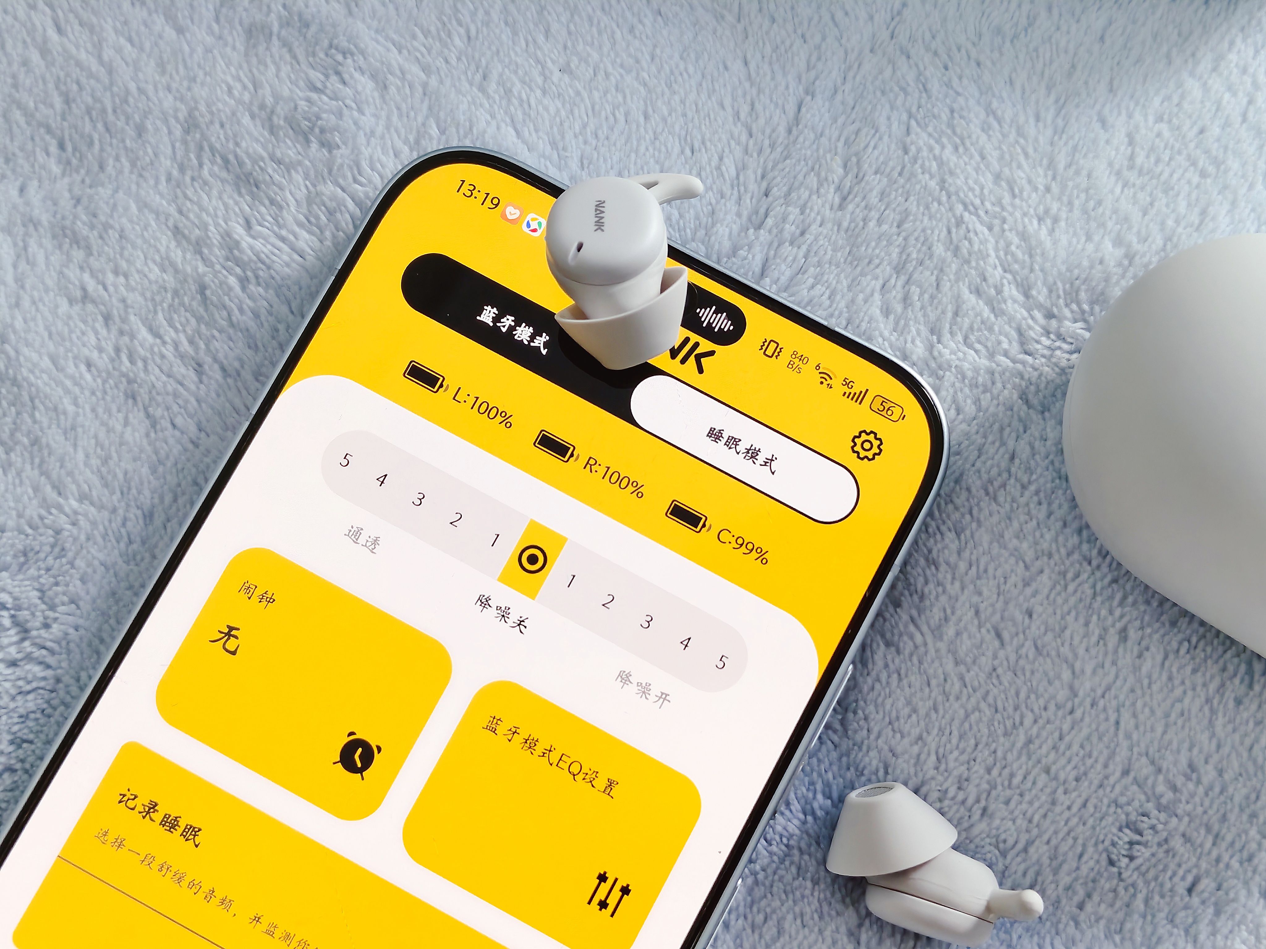 而且它很贴心,降噪深度有5档可调,通透模式也有5档。你可以根据自己的需要调:白天办公开个轻度降噪,隔绝杂音又能听到同事叫你;晚上睡觉开深度降噪,彻底沉浸;甚至还可以开个通透模式,既戴着耳机听助眠音乐,又不耽误听到闹钟或者紧急的呼唤,安全感满满。