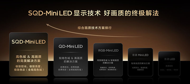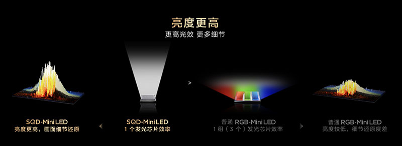 由此可以看出,SQD-Mini LED并非简单的技术迭代,而是对RGB-Mini LED在光学原理、结构设计与最终画质表现上的系统性、全维度超越。
