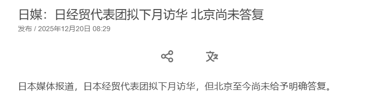 以现在的情况看,日方经济代表团访问的可能性应该不高,多半是要推迟或取消。中国外交部在12月早些时候,曾回应过日方的请求。中方继续敦促日本反思纠错,要求高市早苗先撤回言论。