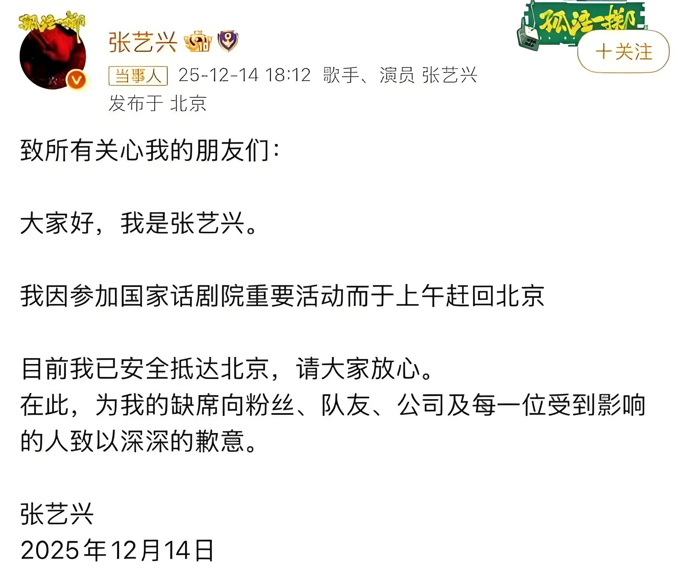 在去年12月时,张艺兴就曾公开发文称,自己计划回到韩国参加EXO的演出活动。