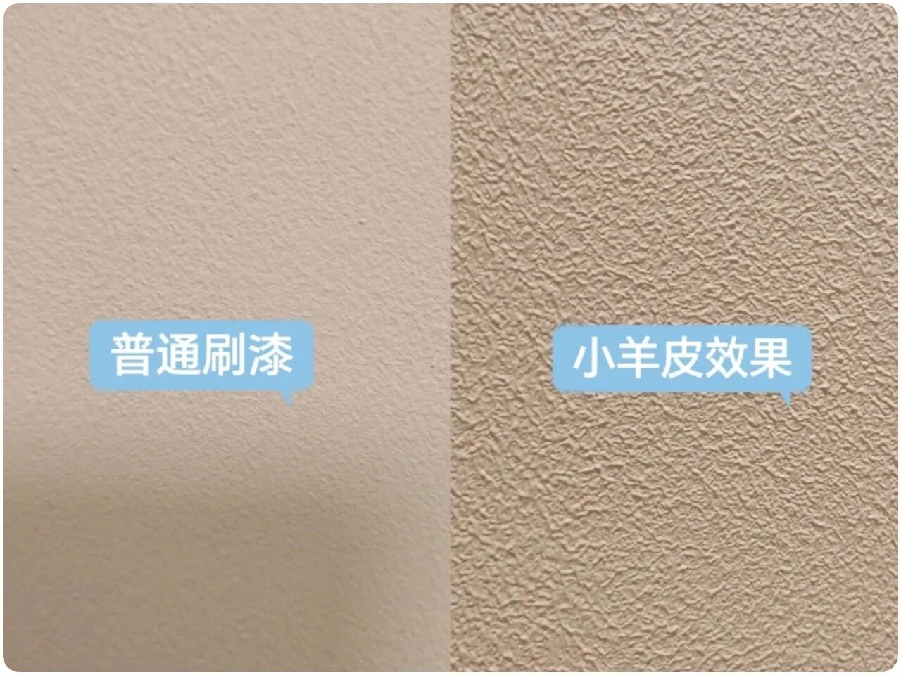 ▲一定买合适的滚筒刷,滚刷的毛长不同,就会导致耍不来的纹理效果不同,必须长毛的滚筒或带肌理感的毛刷,例如小羊皮/橘皮一类的,价格不贵30-50元,好点的在80元左右。滚涂工艺