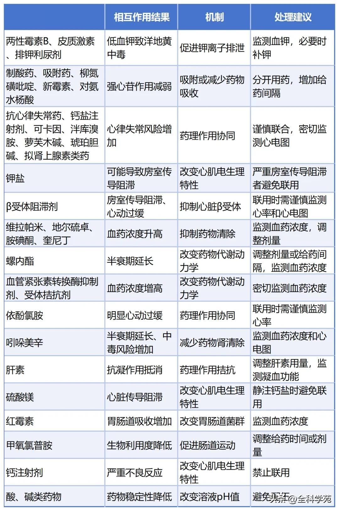 >65岁老年患者,应从低于成人常规剂量的小剂量开始首剂给药;根据肾小球滤过率调整剂量,监测血药浓度;低体重患者(体重<50 kg),按实际体重折算剂量,以规避因剂量不当导致的毒性风险升高及致死性心律失常等潜在危害;高危患者优先替代方案。如急性心衰合并肾功能不全、老年患者,可优先选择非洋地黄类药物控制症状。药物相互作用与处理建议