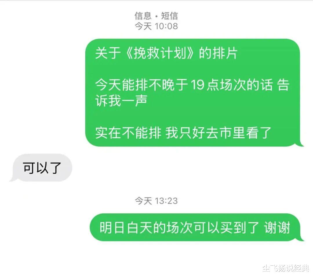 上午和影城电话联系,我说:你们公号影讯说周六十二点有《挽救计划》,怎么买不到票了?