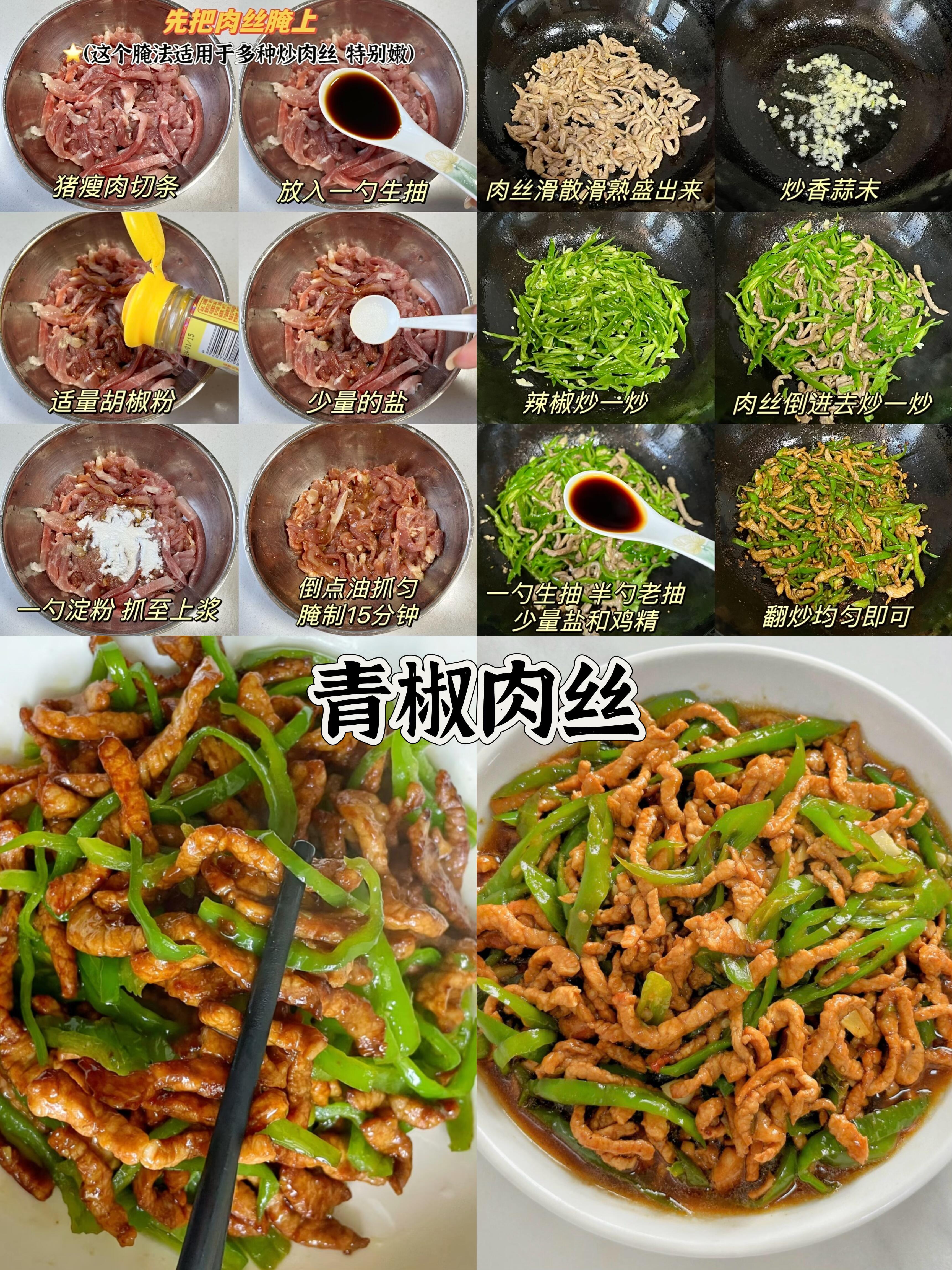 🥩🥩青椒肉丝:肉丝滑嫩,青椒脆爽,下饭神器