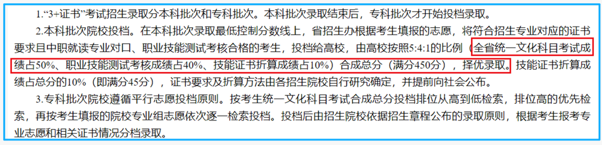 “3”作为录取依据,“证书”作为录取资格(获得相应证书,才能被录取)。