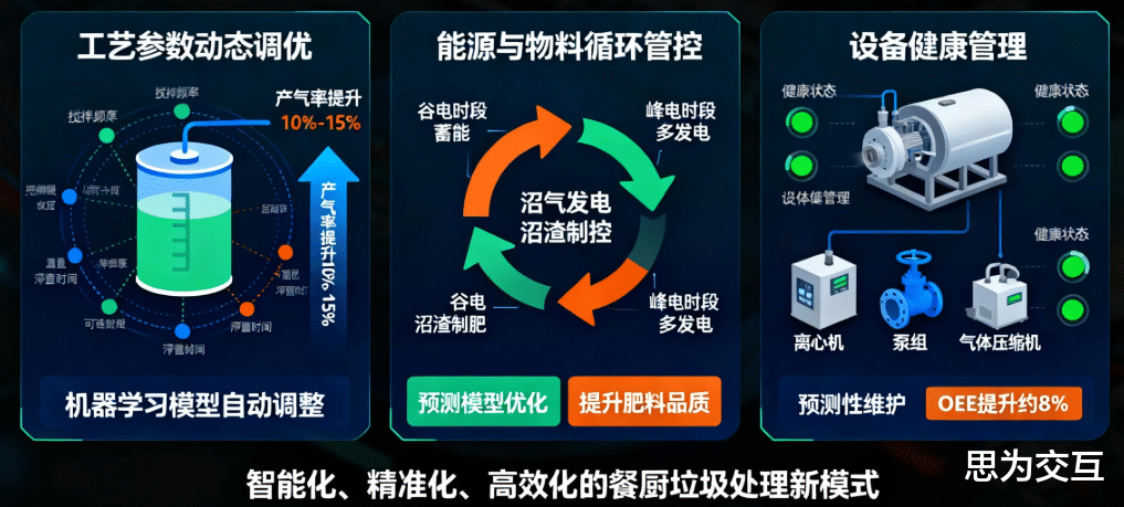 1.工艺参数动态调优餐厨垃圾成分波动大(如含油率、含水率变化),传统固定工艺参数难以适应。数字孪生通过机器学习模型,根据实时进料特征自动调整发酵温度、搅拌频率、滞留时间等变量,使产气率提升10%–15%,同时降低能耗。