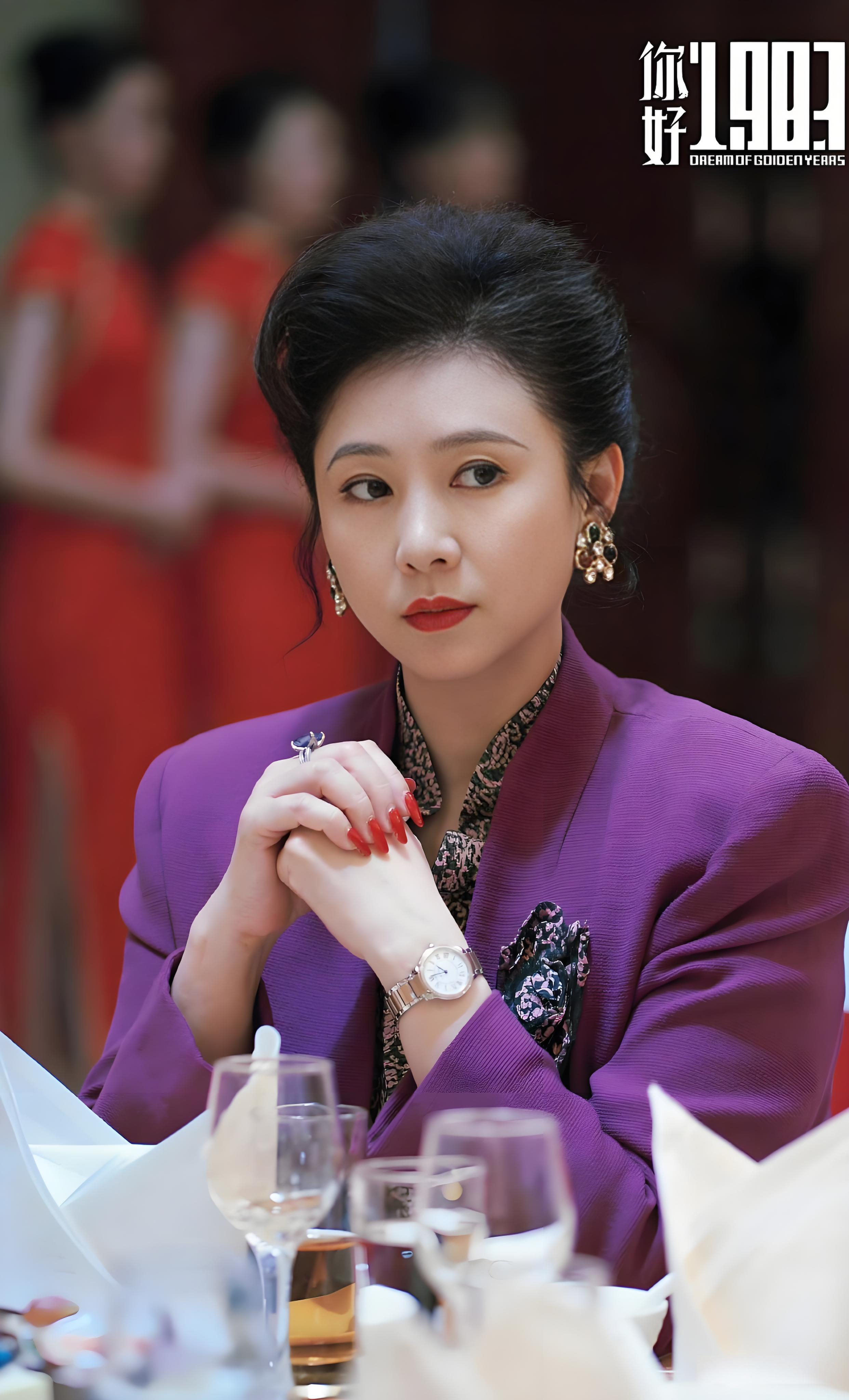 照片中的翁虹,身着一件紫色西装外套长裙,那独特的剪裁和优雅的线条,完美地勾勒出她曼妙的身姿。她盘着具有80年代标志性款式的发型,每一根发丝都仿佛在诉说着那个时代的故事。大红色的指甲鲜艳夺目,宛如跳动的火焰,彰显着那个时代特有的时髦感。此时的她,活脱脱就是一位从80年代走来的女强人,气场强大,让人不禁为之侧目。