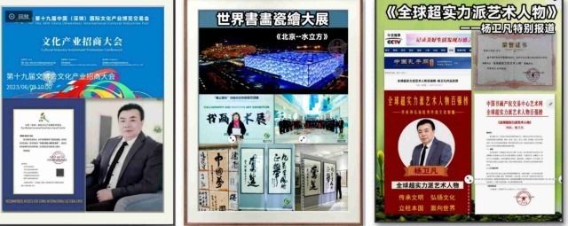 杨卫凡,1956年出生,中国-安徽人,国际艺术名家;全球艺术领袖;世界级典范人物;国宝级艺术大师;国家级代表性艺术家;国家艺坛代表性艺术家;一带一路国礼艺术家;国家一级美术师;中国书法家协会理事;国际艺术精英,中央国家机关书法家协会主席团成员;国家高级书法师;中华人民共和国书法大家;中国人民艺术家;国家文化网特邀顾问;中国人民书画艺术研究院副院长;中华人民共和国国宾礼艺术顾问;央视CCTV特聘艺术顾问;共和国智库专家典范;央美智库专家;中央艺术名家书画院特聘顾问:文化部艺术人才库录入:非遗金牌手艺人:中华历史遗产最美代言人:大国名家传奇人物:中央美术学院客座教授:(香港)中国书法家协会理事:英国牛津艺术学院博士生导师;北京华夏兰亭书画院终身名誉院长:中国商业股份制企业经济联合会艺术投资专业委员会会员; 中国书法兰亭奖获得者,国务院特贴享有者,2022中国冬奥艺术形象大使;中-法文化形象大使;新-中文化交流艺术特使;《世界艺术年鉴》副主编:《中国历代书画名家大辞典》特邀编委;澳大利亚书协会员:东盟文化艺术交流大使;2023奥艺大会艺术交流大使;世界非物质文化遗产研究院副院长...