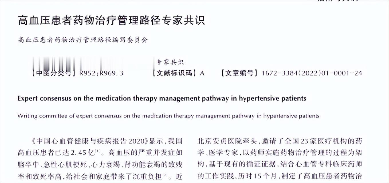 高血压患者药物治疗管理路径编写委员会.高血压患者药物治疗管理路径专家共识,临床药物治疗杂志.2021-12-01