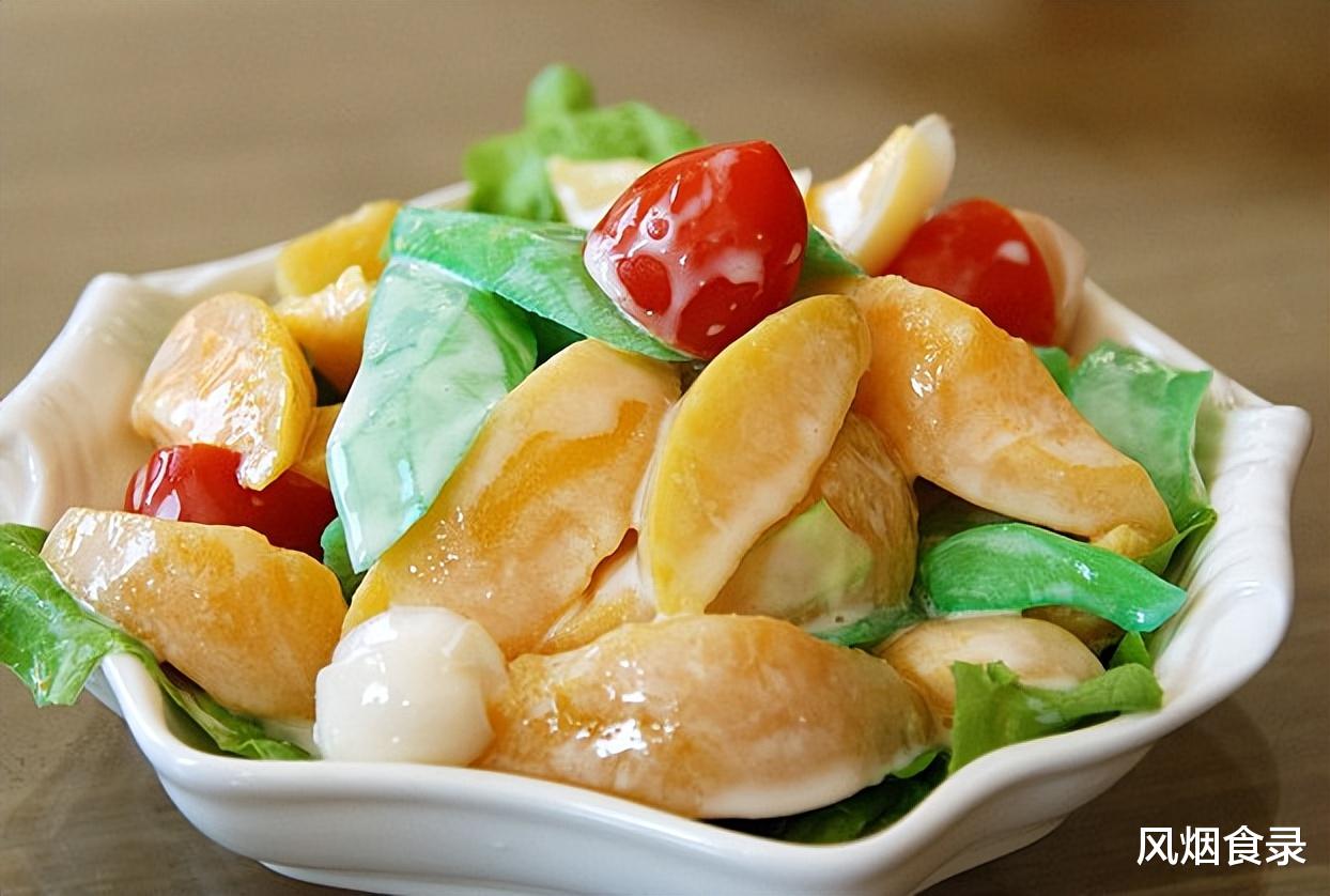 捏成蟠桃模样,再拿青梅片当叶子、山楂泥点尖儿,上笼一蒸,浇上糖芡,便成了“鲜桃”模样。