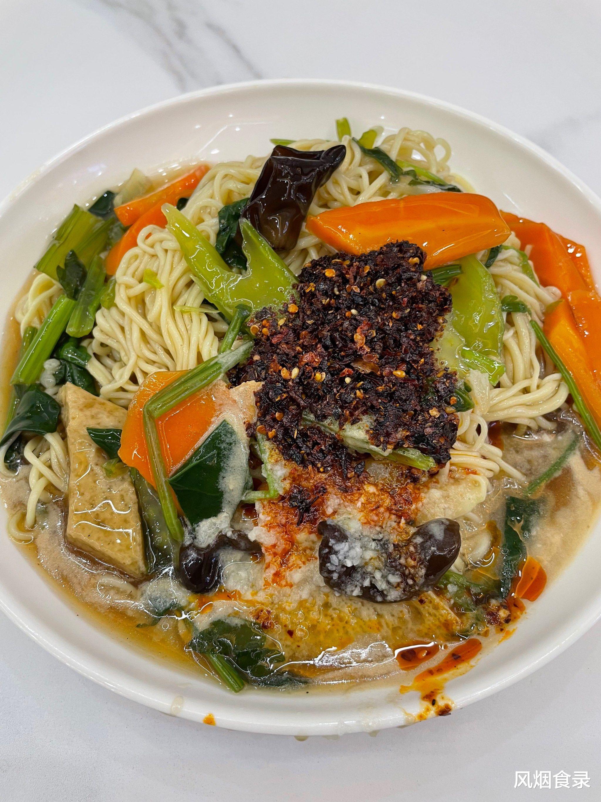 再以武火猛煮、文火慢炖至软烂,配细拉面、萝卜片、蒜泥、辣椒油,酸辣鲜香直窜鼻腔。