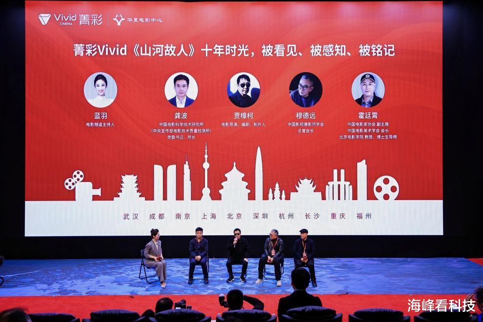 活动现场同步举行菁彩Vivid特别版《山河故人》十年重映观影会,导演贾樟柯与多位电影技术与创作领域专家惊喜亮相,围绕创作心路与影视技术革新展开深度分享,与影迷共赴“十年之约”的同时,也见证了国产电影技术标准落地的重要时刻。