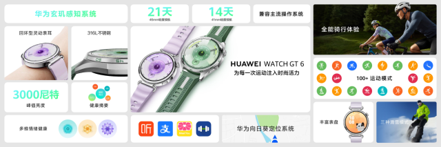 续航是GT 6系列的核心优势。采用高硅叠片异形电池,电池密度提升37%,轻度使用最长可达21天,常规使用12天无忧,高强度运动模式下仍可坚持40小时。无论是长途旅行还是户外挑战,都能彻底告别电量焦虑。更难得的是,它全面兼容华为、安卓与iOS设备,打破生态壁垒,让更多用户享受“超长续航,功能体验不打折”的完整体验。