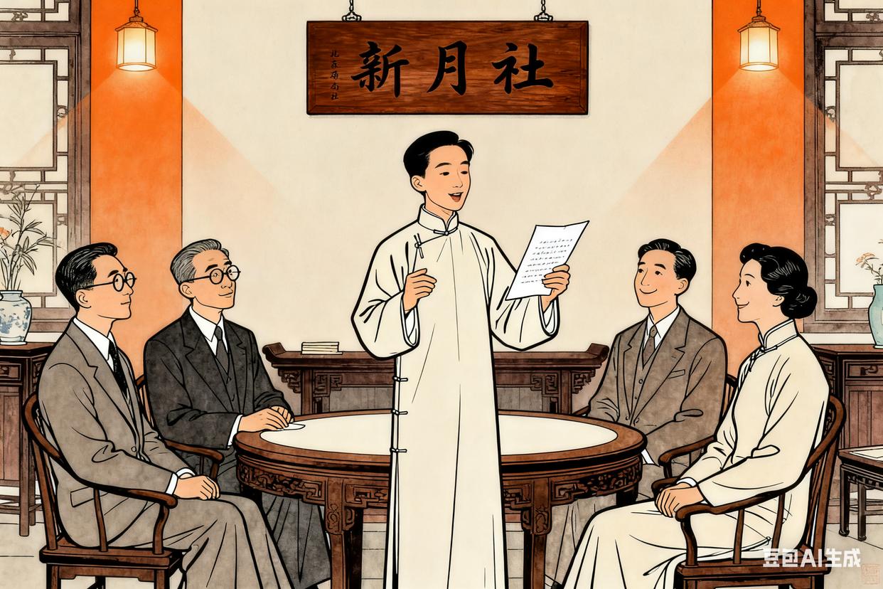 1923年春天,北京石虎胡同7号的新月社里,胡适、梁实秋、陈西滢等人围坐在一张圆桌旁,徐志摩手里拿着一份诗稿,正在朗诵《雪花的快乐》。"假如我是一朵雪花,翩翩的在半空里潇洒",他的声音带着江南口音,温柔又有力量,在场的人都听入了迷。新月社是徐志摩和朋友们一起创办的,初衷是"研究新诗,交流文学"。每次活动,徐志摩都最积极,提前布置场地,准备茶水,还会邀请一些年轻的诗人来分享作品。有一次,一个年轻诗人因为紧张,朗诵时忘了词,徐志摩赶紧站起来,接过诗稿,帮他接着朗诵,还笑着说"没关系,我帮你记着"。新月社的活动成了当时北京文艺圈的盛事,有人说"志摩就像新月社的太阳,走到哪儿都带着光"。