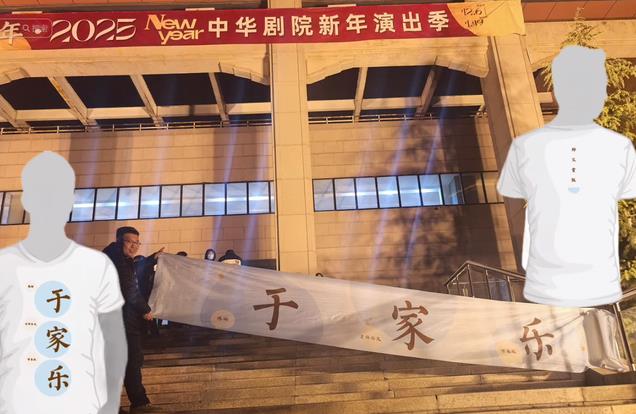在德云社的演出地附近,有人拉了写有“于家乐”的横幅。