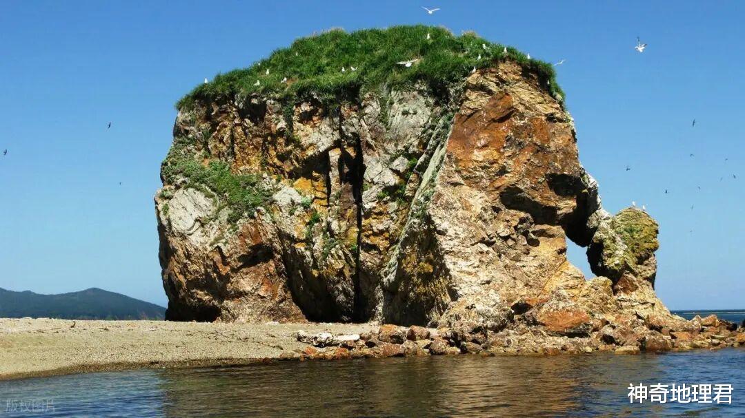 库页岛海边酷似小象的巨石