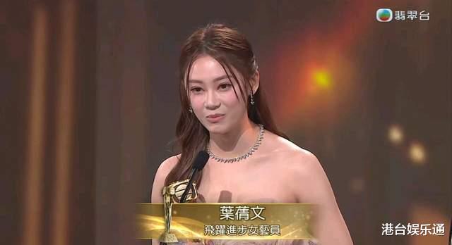 飞跃进步女艺员由叶蒨文获得。她因拍摄《爱·回家之开心速递》而打开知名度,2025年则凭借恋综《女神配对计划》全城爆红,商演、代言不断,是目前TVB吸金能力最强的新生代女星之一,在颁奖礼举行前便有很多人预测她获奖。