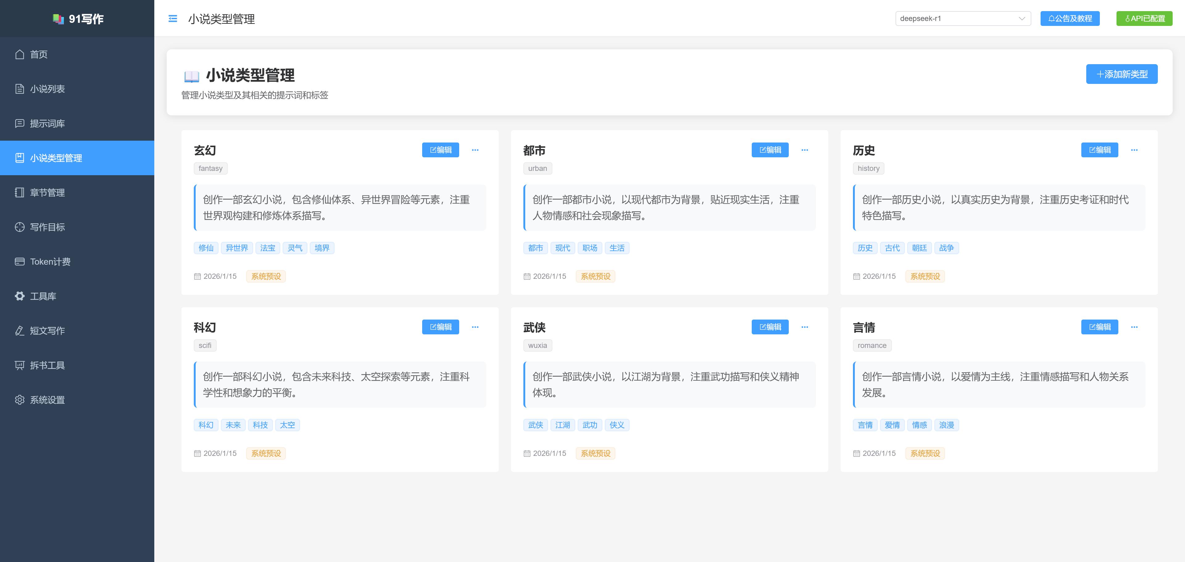 小说类型管理