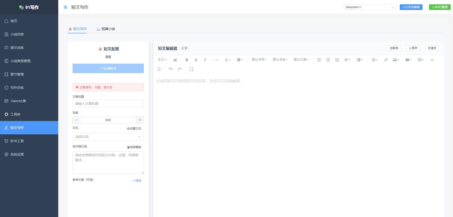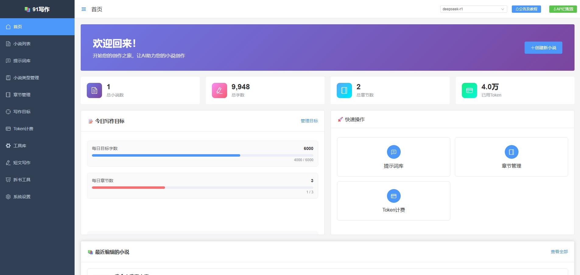 项目介绍91Writing —— 一个基于 Vue3 + Element Plus 的智能 AI 小说创作工具,集成多种 AI 模型,提供完整的写作工具链。