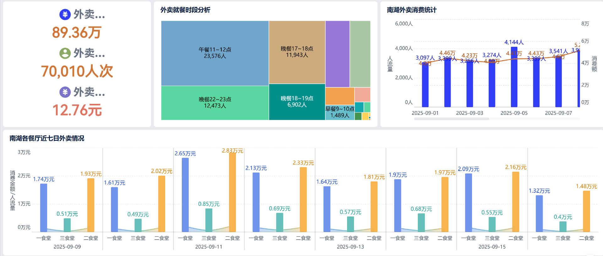 学校只知道食堂总收入大概有多少,但对于消费人次的真实变化、人均消费额的波动规律、各餐段的贡献度等趋势性指标,缺乏连续、清晰的分析。