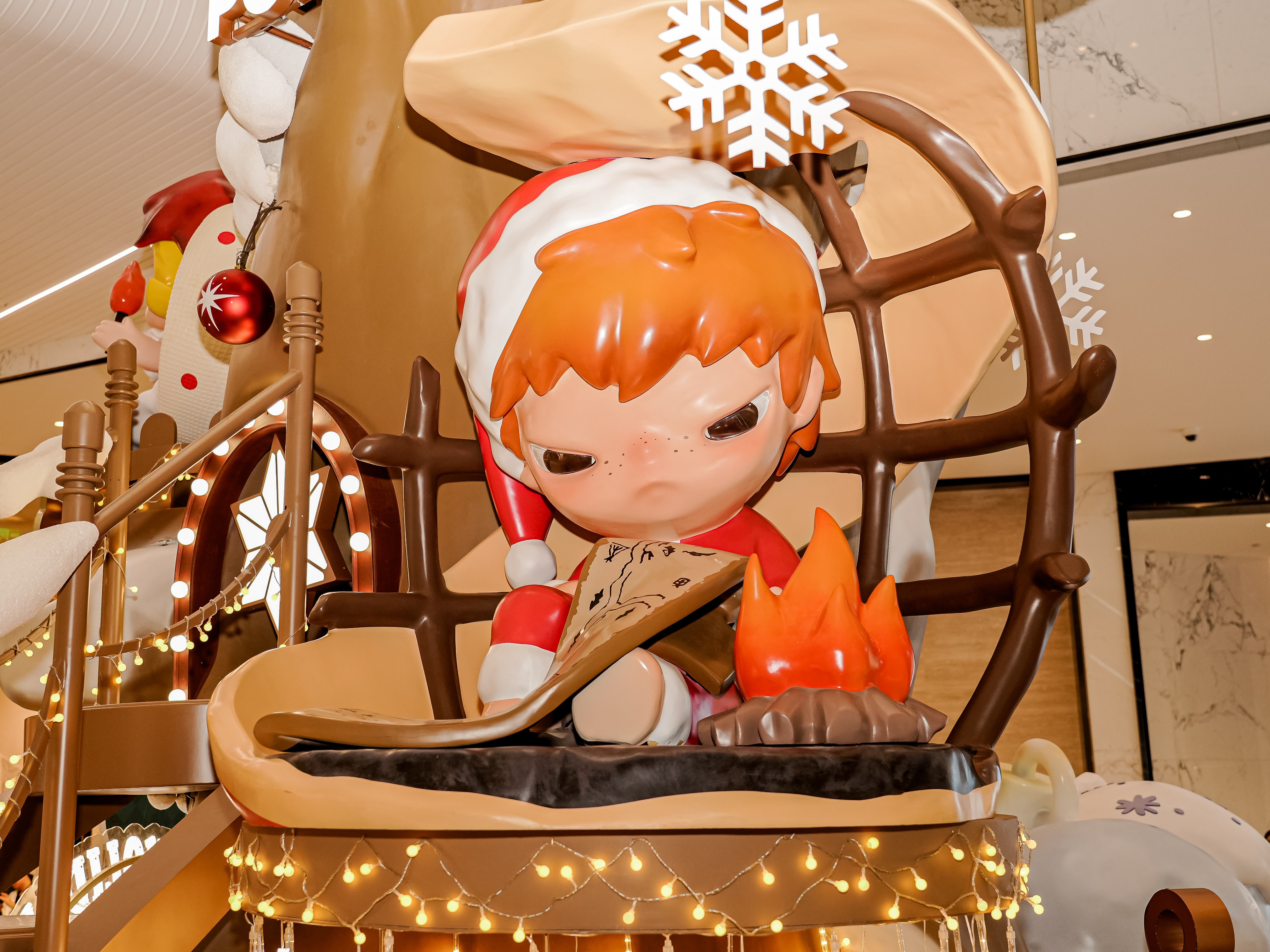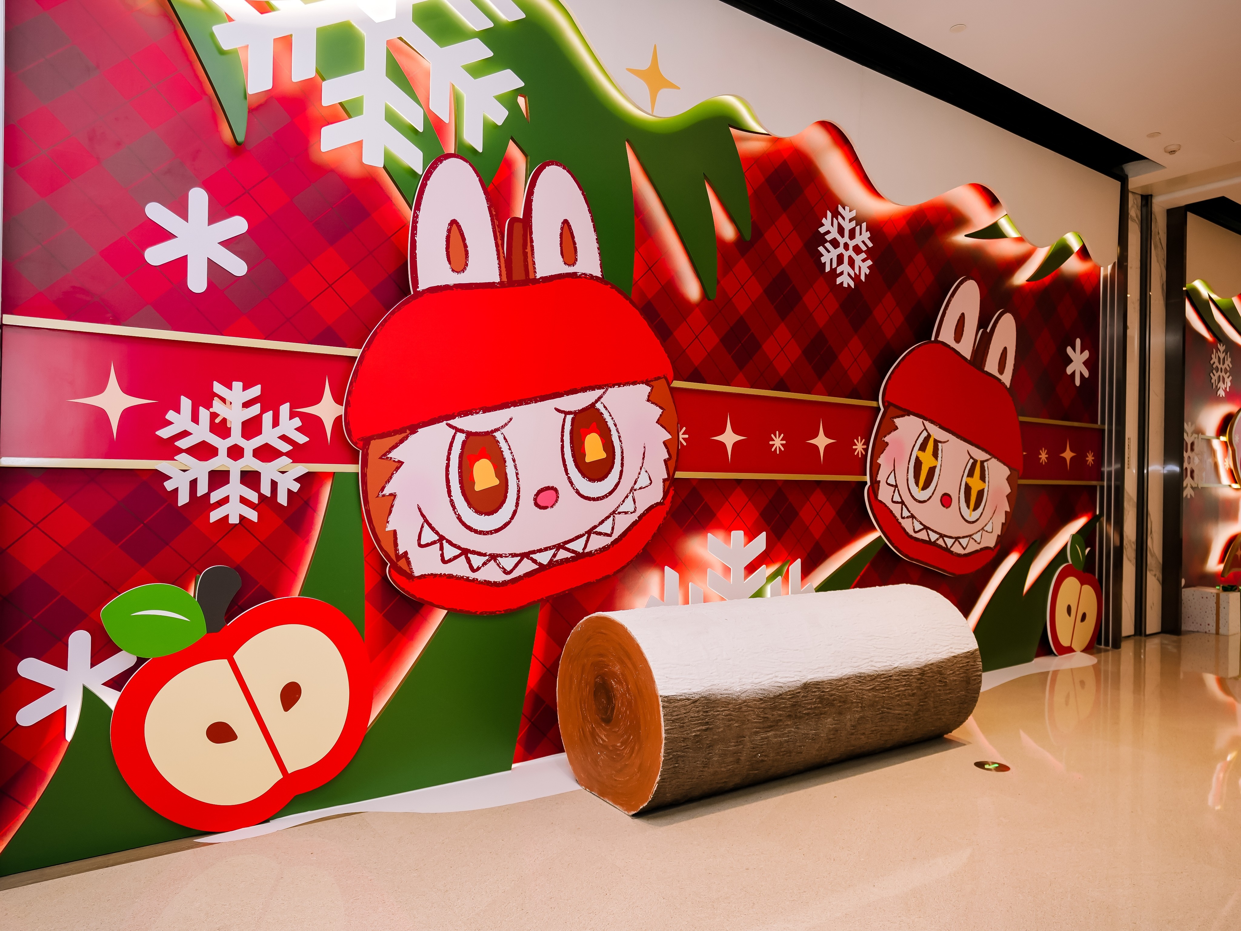 站点③平安果树屋(L1 中庭):“平安果树屋”像是从童话里出现的小小心愿木屋。苹果与雪意点亮屋檐,暖光从窗框缓缓溢出,整个场景都透着柔软梦幻的节日氛围。在树屋下,泡泡玛特的小伙伴们正替你许下“Apple of My Eye”——你最珍贵 的平安星愿,把这份年末的温柔送给你最珍贵的人。