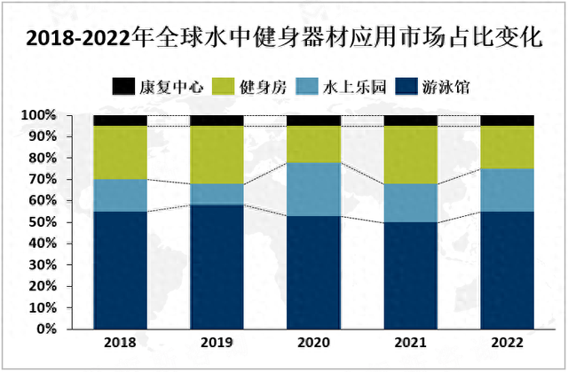 水中健身器材广泛应用于游泳馆、水上乐园、健身房、康复中心等场所,受到越来越多人的欢迎和喜爱,其中游泳馆是水中健身器材市场的主要应用领域。