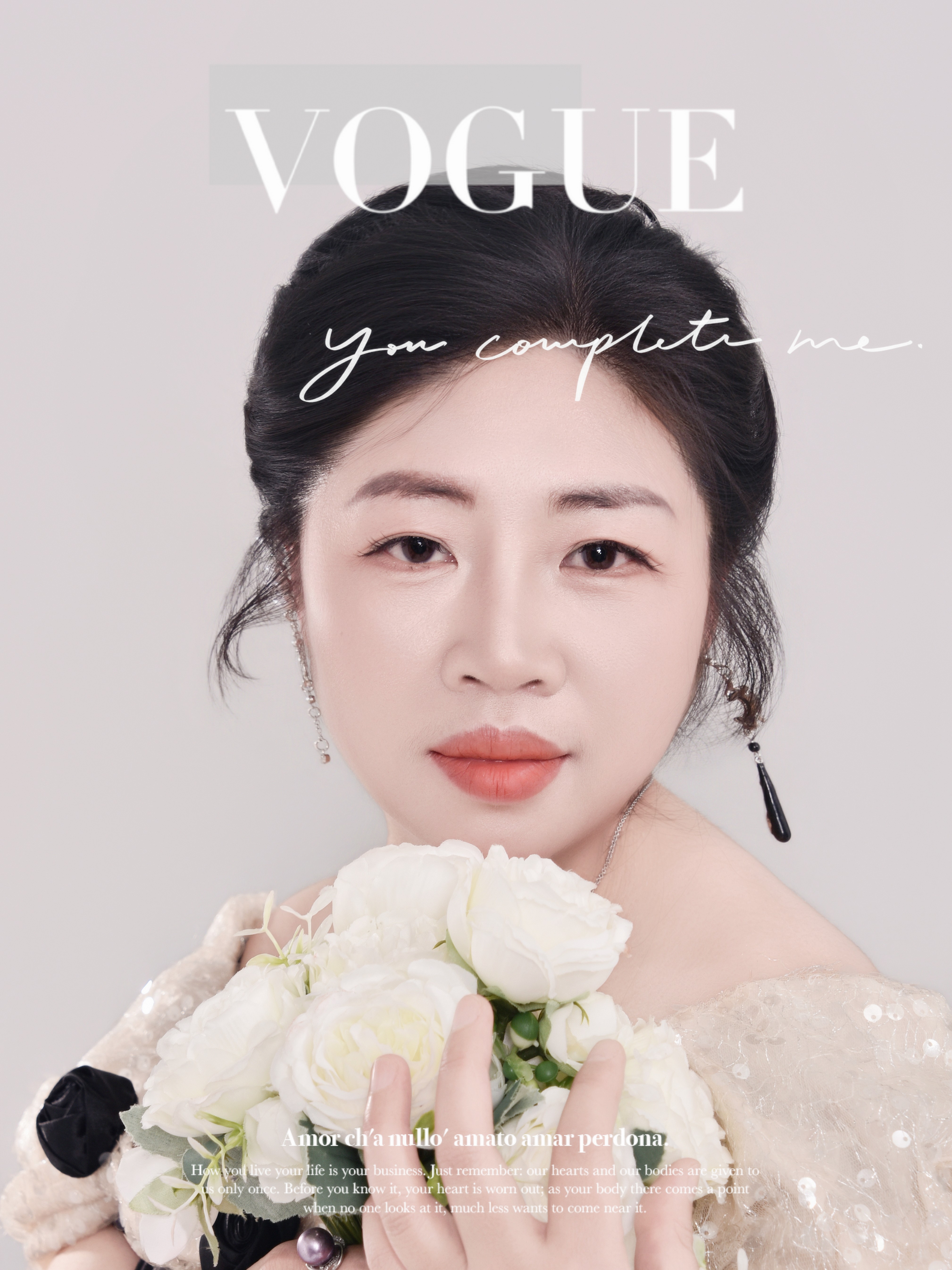 初次见到陈莲的作品,很容易被她极强的风格适配力打动。前一秒,她身着剪裁利落的黑色西装,颈间的飘带与微扬的眉眼,勾勒出独立清醒的都市女性轮廓,眼神里藏着不被定义的力量,仿佛下一秒就能从容走进写字楼,成为职场里最亮眼的存在;后一秒,她换上缀满亮片的浅杏色礼服,手捧洁白花束,发髻间的碎发与垂坠耳饰相映,温柔得像春日里的风,一颦一笑都带着治愈感。这种从干练到温婉的无缝切换,让她在新人模特中显得格外亮眼 —— 她不局限于某一种标签,而是愿意去探索每一种风格的可能性。