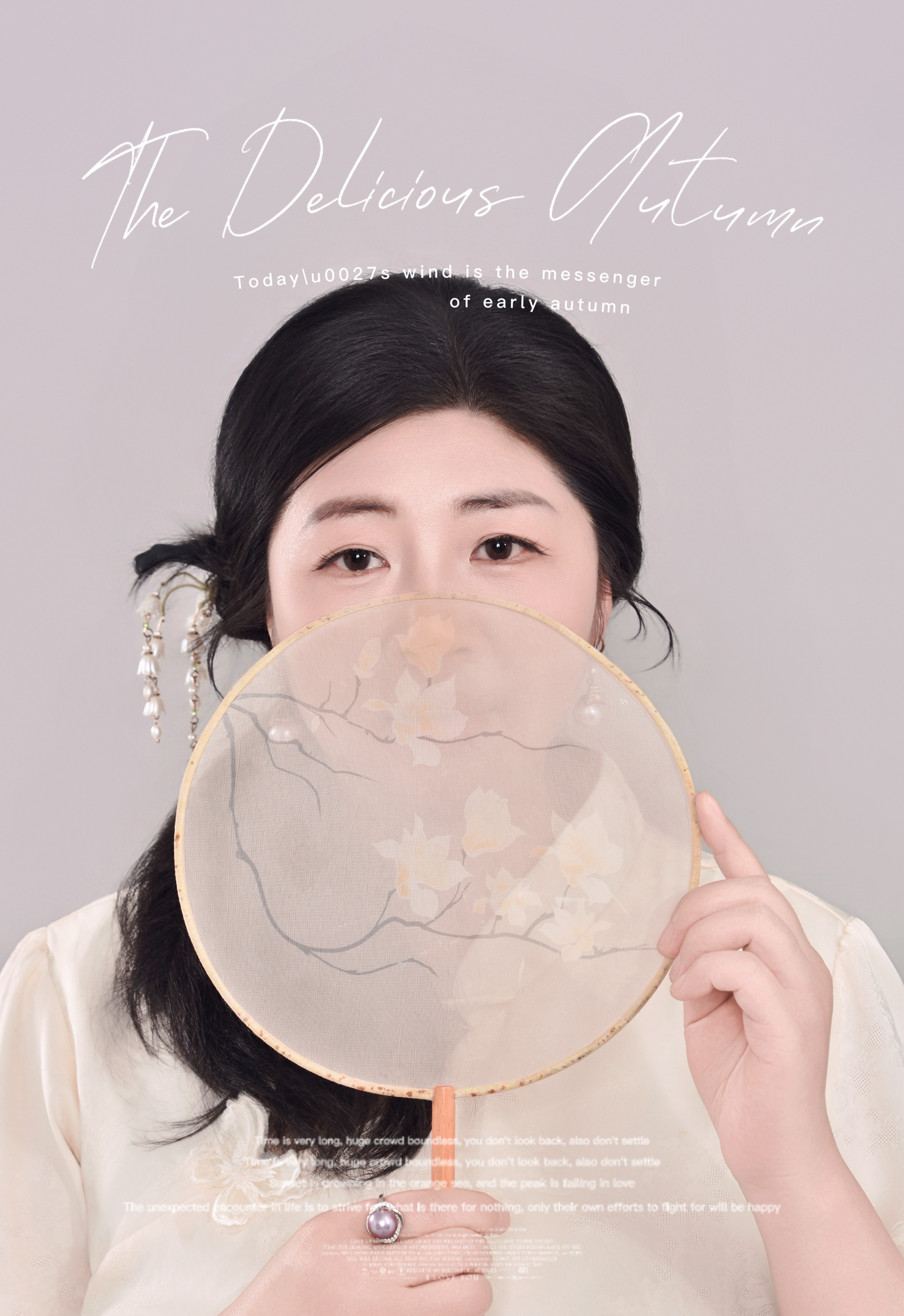 更难得的是,陈莲对细节的把控力。在一组国风作品里,她用半遮面的团扇、垂落的珠钗,将东方女子的含蓄与灵动演绎得恰到好处。眼神透过扇面望过来时,既有 “犹抱琵琶半遮面” 的娇羞,又有藏不住的清澈坚定;而在另一组手持羽毛扇的画面中,她又用慵懒的姿态与柔和的光影,把复古氛围感拉满,每一根发丝、每一个手势都在诉说着故事。这种对情绪的精准捕捉,让她的照片不止是静态的影像,更像是能让人走进的场景,充满了呼吸感与生命力。
