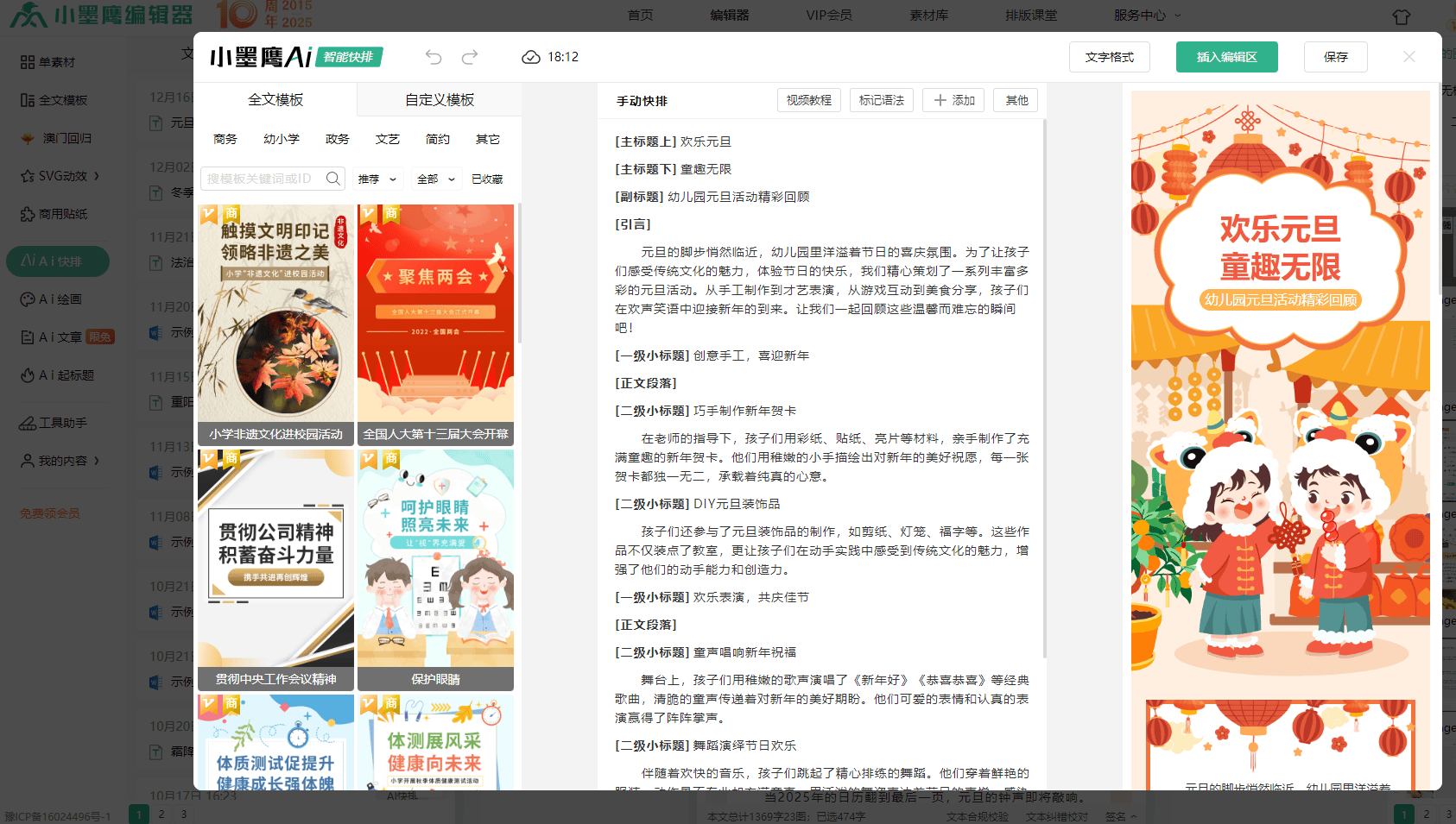 选小墨鹰编辑器。拥有25万+单素材、10000+全文模板、3000+SVG动效,覆盖45个行业主题,换风格成本最低。
