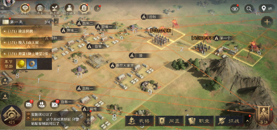 如果说iPhone17的矛盾是“强性能弱体验”,那《三国:谋定天下》的设计理念就是“好玩又省心”。传统SLG游戏常被诟病“肝氪严重”:手动铺路要点击几十次屏幕,升级武将得反复刷野怪,抽卡全靠运气还容易“歪”。但在“三谋”的世界里,这些问题都被一一解决:自动铺路功能能直接规划最优路径,练兵所可以托管部队自动升级,抽卡20次必出橙将的保底机制让“非酋”也有盼头——玩家不用花大量时间“肝”,也不用充钱“氪”,就能享受完整的游戏体验。