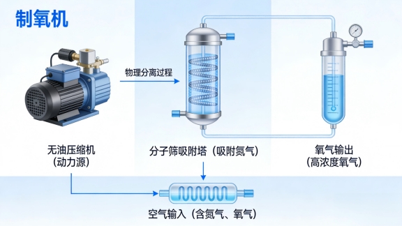 制氧机的核心作用就是缓解密闭环境缺氧、提神醒脑、提升舒适感,原理很简单,就是把空气中的氮气分离出去,提取高浓度氧气。