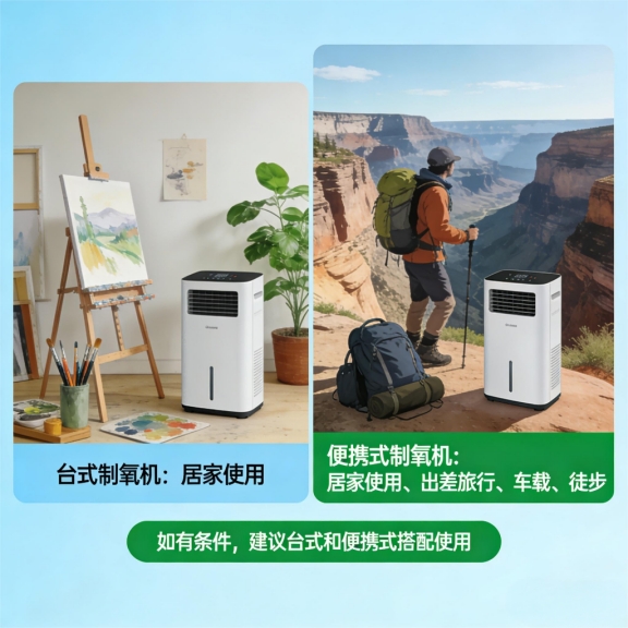 目前市面上制氧机主要分为两类——台式制氧机和便携制氧机,两者适用场景差异明显,对商旅人士来说,按需选择才能避免闲置、不踩坑。