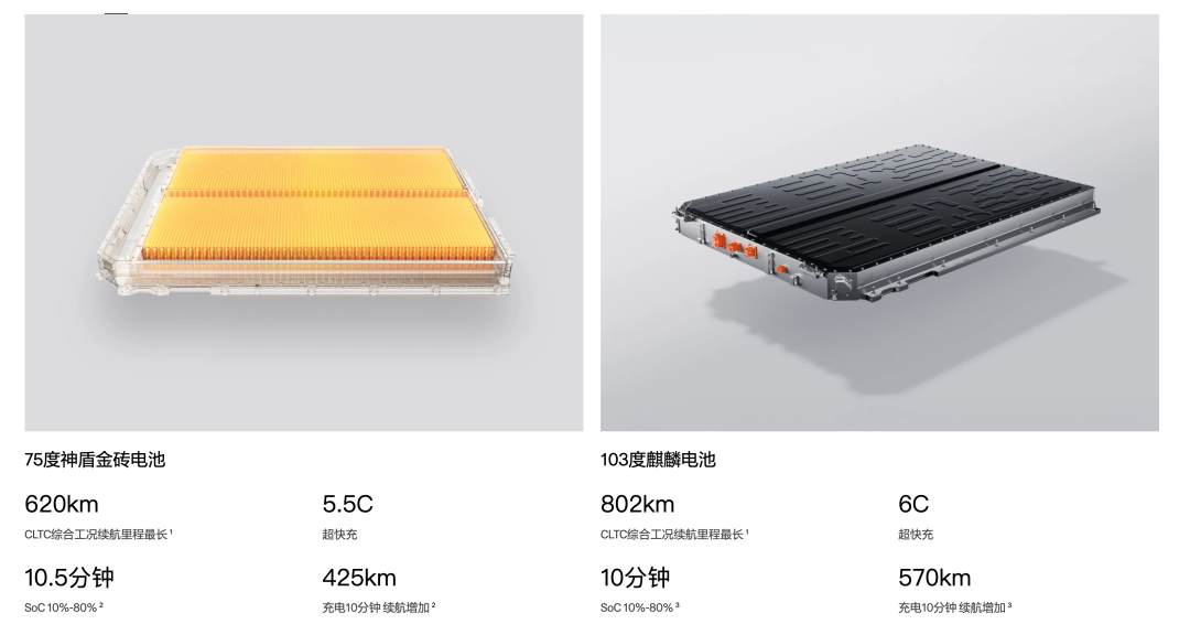 103度后驱Max版,指导价24.98万元,升级为900V平台、宁德时代麒麟电池,CLTC续航802km,零百加速缩短至5.1秒;