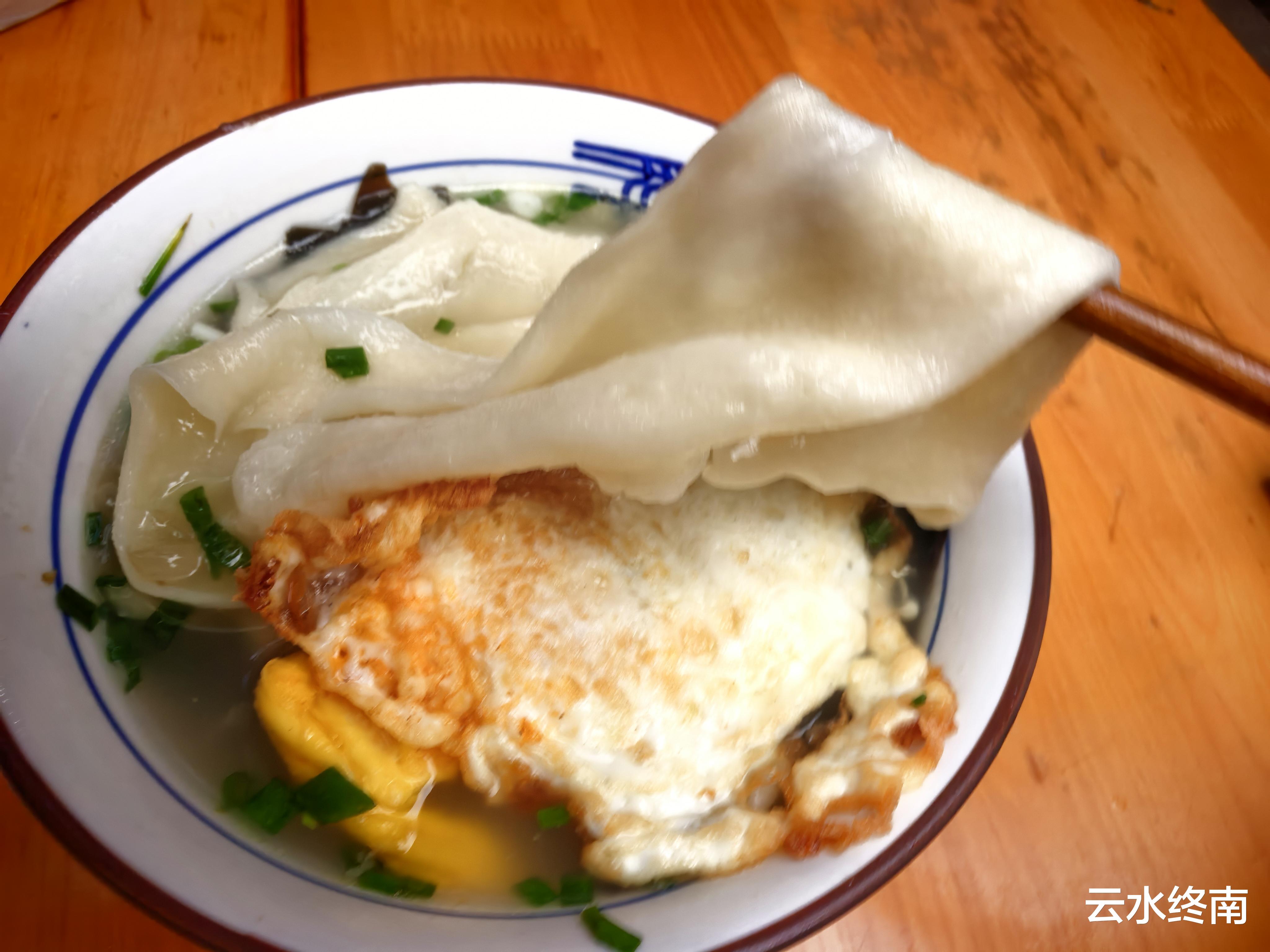 鸡婆头还有一个名字“铺盖面”,是说它外形像床上的被子,也是很形象的。