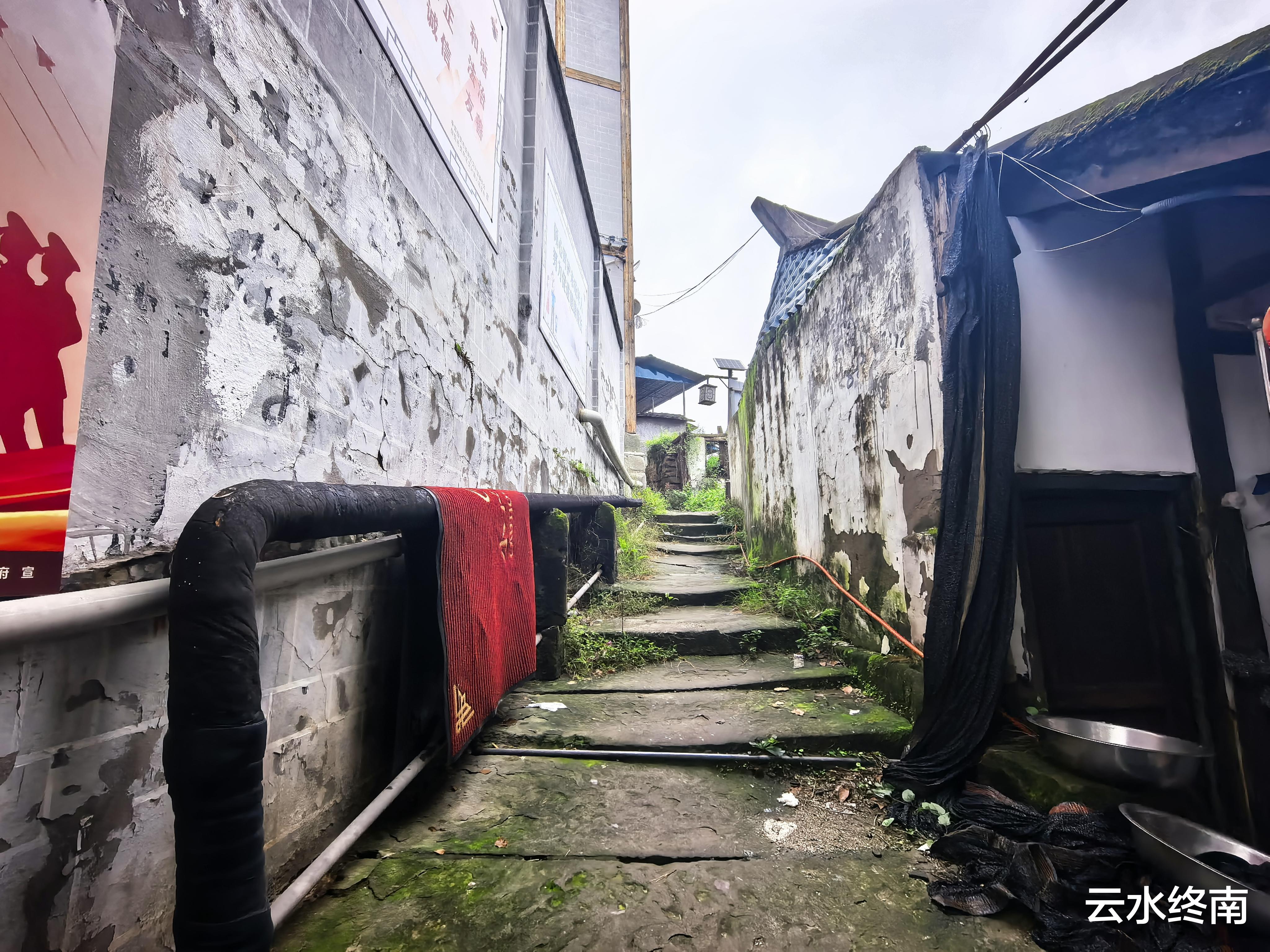 沿着逼仄的街道往第一滩码头方向下去,两边都是老房,处处青苔。