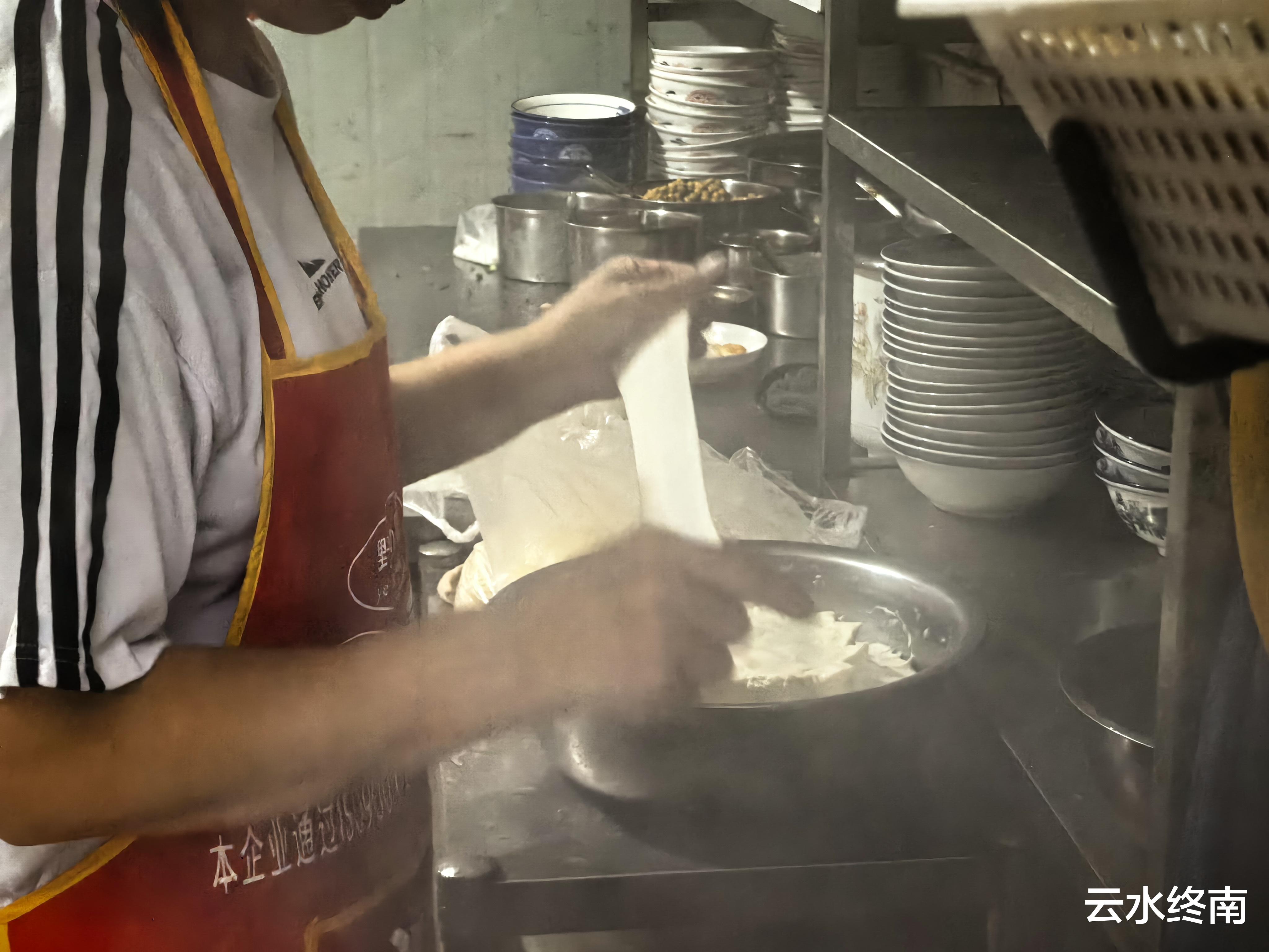 这个烂茶馆其实是个早餐店,卖包子稀饭,特色搭配"油条+白面鸡婆头",可以我们肚子吃不下了。