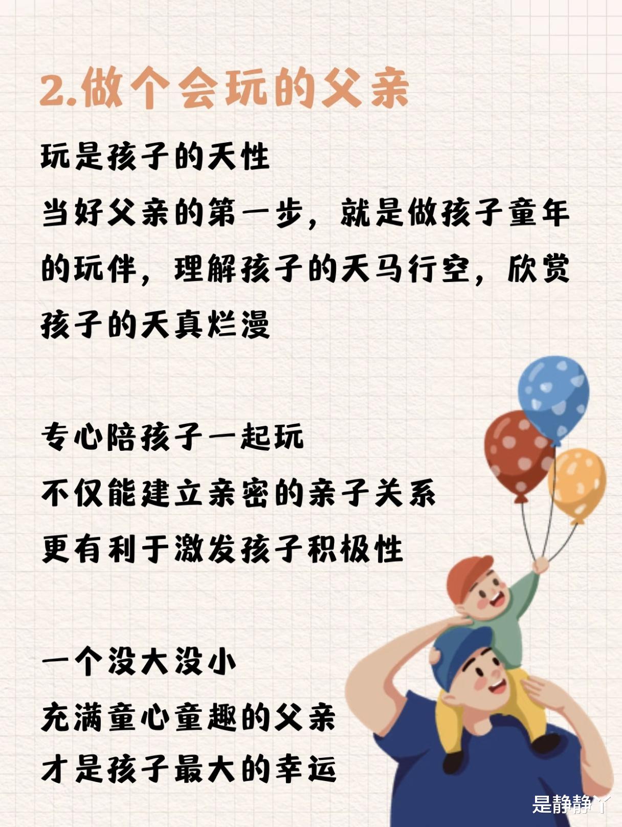 玩是孩子的天性,也是父亲与孩子建立亲密关系的捷径。一个会玩的父亲,会蹲下来和孩子一起滚泥巴、吹泡泡,甚至笨拙地模仿动画片角色。这种“没大没小”的互动,不是浪费时间,而是给孩子最好的礼物。孩子会在笑声里明白:爸爸不是高高在上的“权威”,而是可以一起疯、一起闹的伙伴。这种亲密感,会成为孩子一生的安全感来源。相反,那些总说“等我忙完”的父亲,等来的往往是孩子长大后的一句“你从来都不陪我”。