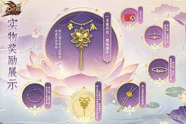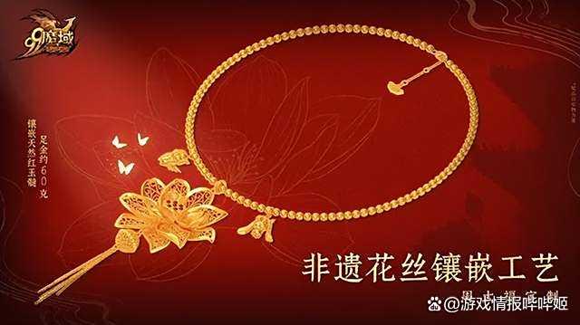 此次赛事以"圣莲灵境"为核心视觉场景:碧波莲池间,圣莲神女踏莲翩跹,金鲤游弋、光影交织,将千年传说化作如梦画卷。更值得关注的是,游戏携手非遗"花丝镶嵌"工艺,定制价值超10万元的周大福【圣莲花丝·魔域鎏华】足金项链,以60克999足金经百道宫廷秘法打造,将皇家美学与游戏情缘凝为颈间瑰宝。此外,周大福"花月佳期"莲花项链、"宝藏女孩"爱心手链等黄金饰品亦成赛事专属礼遇,为"摘冠"增添仪式感。
