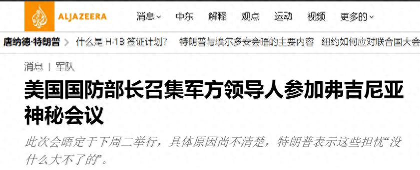 美国防长赫格塞斯周四时,代表五角大楼“战争部”发起紧急召唤,要求多达800名高级军官参加下周在弗吉吉亚举行的会议。这些高级军官,相当一部分是在敏感地区任职,他们有权代表美国介入当地事务,某些特殊的情况下,他们甚至可以指挥数千名大兵。目前,这些军官们都还不知道会议的议题,显得颇为神秘,部分军官已经定下行程,但也因为这个召唤而耽误。这么大范围的召回军官开会,总不至于是回去喝茶看报纸吧?
