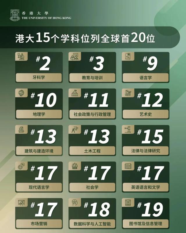 在刚刚公布的2025年QS世界大学学科排名中,香港大学共有33个学科名列全港第一。其中数据科学与人工智能位列全球第18位!